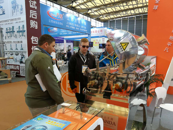 此次參加展會,我司做了(le)充足的準備,配備了經驗豐富的技術人員在現場(chǎng)為廣大來訪客戶解答幹燥難點;同時(shí),我司也帶去了小型樣機,使得(dé)客戶(hù)能(néng)更好的,直觀的了解我(wǒ)司設備。^後展會效果也是有目共睹的(de),門庭若市,絡繹不絕;其中,我司雙滾筒刮板樣機引來了行業內多家大客戶的參觀,並表示(shì)出了合(hé)作意向。