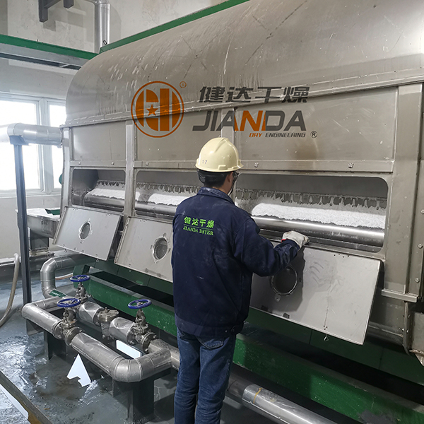 我司在(zài)原有(yǒu)滾筒刮板幹燥機基(jī)礎上進行(háng)了改革,現已解(jiě)決如何在規模化處(chù)理高鹽廢水時使處理(lǐ)效率提高、運行成本降低(dī)的關鍵技術問題,使(shǐ)其具有占地麵積(jī)小(僅為幹(gàn)燥塔的(de)三分之一),能耗低(較噴霧幹(gàn)燥(zào)機節約了80%,產量是其三倍),投資小(僅為幹燥塔的一半(bàn),並可節省一部份勞力)等優點,更能適(shì)應(yīng)時代的發展趨勢,符合國(guó)家“綠色生產,節(jiē)能環保”的生產理(lǐ)念。同時我司也將繼續尋找更為經濟有效的汙水處理技術,為客戶創造更高經濟價值。
