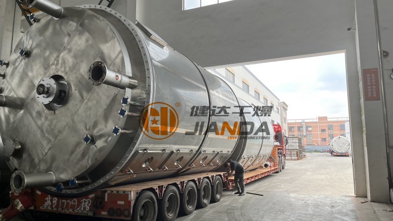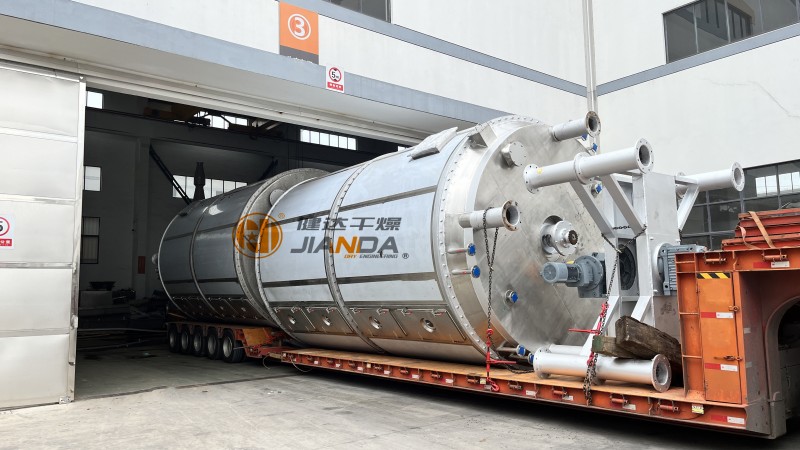 此次發往寧德的四台盤式幹燥機(PLG-3000x20),用於幹燥電池材料三元前軀體,電池材料專用盤式幹(gàn)燥機(jī)針對離心機出來的氯化鋰、碳酸鋰(lǐ)、氫氧化(huà)鋰、氫(qīng)氧化鎳、碳酸鈷和三元材料等物料,我公司開發的(de)盤式幹燥機是在間歇攪拌傳導幹燥器的基礎上,綜合(hé)了一(yī)係列先進(jìn)技術,經過不斷改進而研製開發的一種多(duō)層固定空心加熱圓形載料盤、轉耙攪拌、立式連續的以熱傳導為主的幹燥(zào)設備。