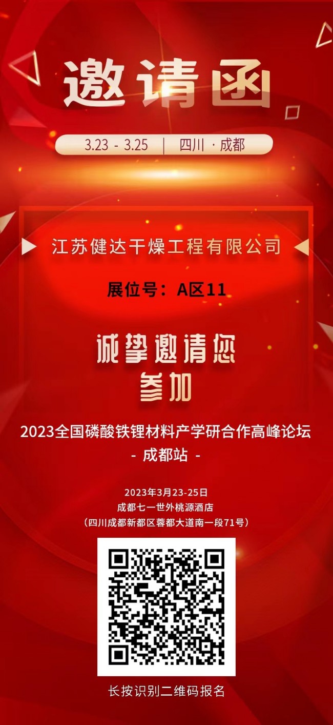 2023年3月15,我(wǒ)司(sī)受邀(yāo)參加2023全國磷酸鐵鯉材料產學研合作高峰(fēng)論壇,屆(jiè)時會給新老客戶帶去幹燥設備的^新資訊,我司憑借多年對(duì)幹燥設備(bèi)結構(gòu)的了解,可根據具體物料特性自主研發自主設計,歡迎廣大客戶前來交流(liú)!