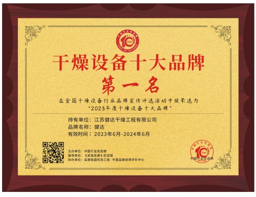 2023年6月7日,中國行業優選榜聯合《發現品牌》欄(lán)目組、品牌強(qiáng)國優選工程等權(quán)威組織共同發起的2023年度“幹燥設備十大品牌(pái)”評選活動圓滿落幕(mù)。麻花传媒MV在线观看幹燥通過不斷創新研發,打造工匠產品,提高項目申報(bào)通過(guò)率,在“中國幹燥設備行(háng)業十大品牌”評選(xuǎn)中獲得中國十大幹燥品牌第一。