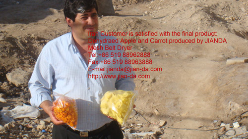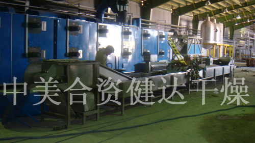 新鮮水果是人們不(bú)可缺少的營養品。然而水果易腐爛,不(bú)易長期貯存(cún)是一個不容忽(hū)視的(de)實際問題,針對這一問題(tí)我公司在原有帶式幹燥機(jī)的基礎上進行了技術改進,改進後的帶式幹燥機使用串聯,形成初幹段、中間段及(jí)終(zhōng)幹段。在初幹段中,由於物料含水(shuǐ)量高,