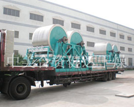 雙筒型幹燥器由同一套減速傳動裝置,經相(xiàng)同模數和齒數的一(yī)對齒輪齧(niè)合,使兩組相同直徑(jìng)的滾(gǔn)筒相對轉動。根據布膜位置的不(bú)同,分為對滾式和同槽式兩類。