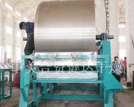單滾筒幹燥器用(yòng)於溶液或稀漿狀是浮液的物料幹燥。布膜方式常(cháng)為(wéi)浸液式或噴濺式。筒體用鑄鐵或鋼板焊製。筒內供熱介質的進出,采用填料函密封型式的進氣頭結構。筒內(nèi)凝液,采取虹吸管並利用筒內蒸汽的壓力與疏水閥之間的壓差,使之連續地熱排(pái)出筒外。