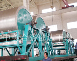 滾筒是幹燥機一種內加熱傳導轉動幹燥設備,濕物料在滾筒(tǒng)外壁上獲得以(yǐ)導(dǎo)熱方式傳遞的熱量,脫除水(shuǐ)分,達到所要求的濕含量(liàng),熱量由筒內壁傳到筒外壁,再穿過料膜,其熱效率高,可連續操作,故廣泛應用於液態物料或帶狀物料的幹燥,對膏狀和粘稠物料更適用。