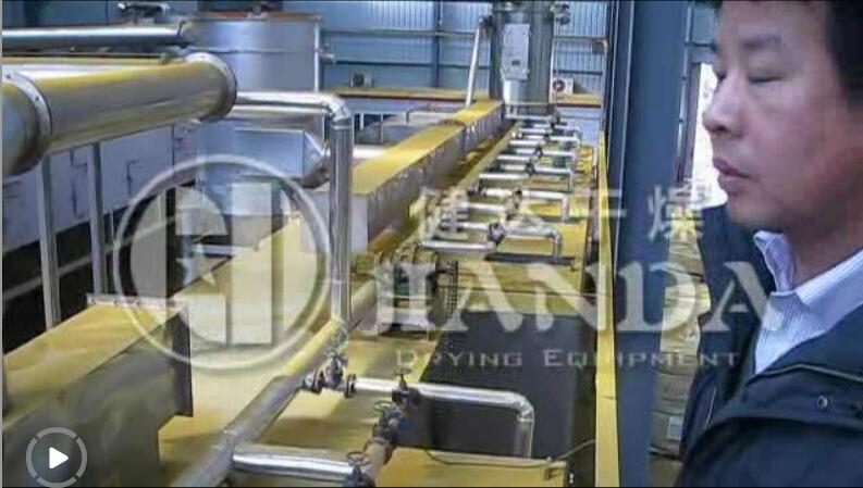 將所(suǒ)要處理的物料通過適當的輔料機構,如星型布料器、擺動帶、粉碎(suì)機或(huò)造粒機、分布在輸送帶上,輸送帶通過一個或幾個加熱單元組成的通道,每個加熱單元均配有空氣加熱和循環係統,每一個通道有(yǒu)一個或幾個排(pái)濕係(xì)統,在輸送帶通過時,熱(rè)空氣(qì)從上往下或從下(xià)往上通過輸送帶上…