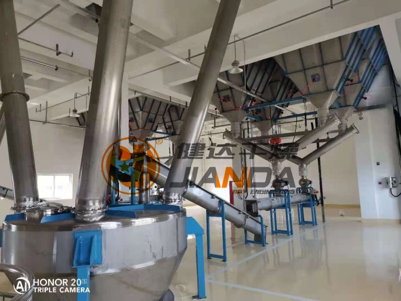我司自主設計的豌豆膳(shàn)食纖維幹燥係統(tǒng),采用獨^技術工藝,包含熱風係統,閃蒸幹燥主機、二次旋流幹燥、收料係(xì)統、尾(wěi)氣係統、控製係(xì)統等。因豌豆渣初含水(shuǐ)分較大(dà),經我司改良設計的幹(gàn)燥主機采用加高(gāo)型閃蒸幹燥機(XSG-2200);在攪拌粉(fěn)碎室內部裝有排汙口,主塔下部裝有可視清潔門,保障產品的安全生產;在攪拌軸(zhóu)承采用油浴冷卻,能有(yǒu)效延長傳動部件的使用壽命(mìng);全自動化生(shēng)產,全封閉(bì)式加工,杜絕食(shí)品汙(wū)染,終端產品穩定性極(jí)。