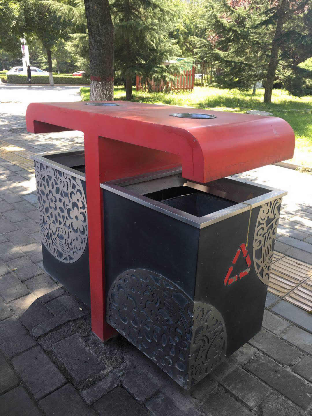 【噴塗工藝】垃圾桶經磷化噴(pēn)砂處理後采用戶外(wài)塑粉靜電噴塗再經(jīng)烘箱高溫烘烤