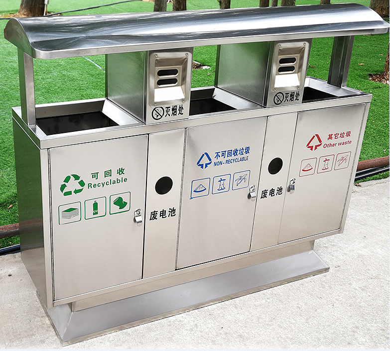 【品名】 3分類垃圾桶  【品牌】 中星  【型號】 DZ-1001  【材質】優質不(bú)鏽鋼  【內膽】鍍鋅板、不鏽鋼  【製作工藝】選用優質不鏽鋼鋼板裁剪、壓製、折彎後再焊接而成型  【噴塗工藝】