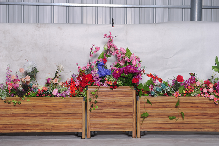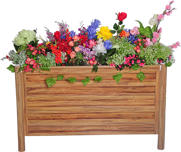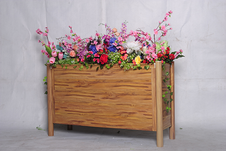 產品特點:本花箱主要采用鋁合金型材製作而成,鋁合金結構構件一次性澆築成形、上下兩圈結構采用(yòng)靜電粉末噴塗處(chù)理工藝;四周側麵板采用木紋轉印(yìn)工藝,使整個花箱木(mù)質感加強,外觀呈現的更加高端(duān)有檔次,適合放在庭院,小區,別墅,公園,道路中間及道路兩側等區(qū)域。