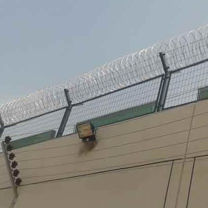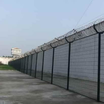監(jiān)獄護欄網(wǎng)又稱作“Y型安全防禦護網”,是由V型支(zhī)架立柱,加(jiā)強型焊接片網,安全防盜連接件和熱鍍鋅刀片(piàn)刺籠組成強度和安全防禦性級別很高。近年來,被廣泛應用在監獄,軍事基地(dì)等(děng)高安全場所。注:如果在監獄護欄網頂部加裝刀(dāo)片刺絲、刀片刺繩後又很好的增強了安全防護性能。采(cǎi)用電鍍、熱鍍、噴塑、浸塑等防腐形式,具有很好的抗老化、抗曬、耐候等特點(diǎn)。其產品造(zào)型美觀、花色多(duō)樣,既起到圍欄作用,又起到美化作用。由於具有安全性高、防攀爬能力好,網片連接方式采用(yòng)特製SBS緊扣件,有效防止人為的破壞性拆卸,橫向四道折彎加強筋,使網麵強度(dù)顯著增加。