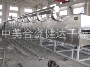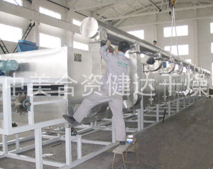 將所要處理的物料通過(guò)適當的輔料機(jī)構,如星(xīng)型布(bù)料(liào)器、擺動(dòng)帶、粉碎機或造粒(lì)機、分布在輸送帶上,輸送帶通過一個或幾個加(jiā)熱單元組成…