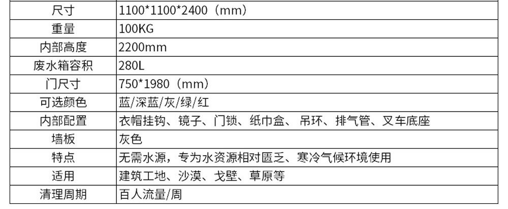 產品規格:1100*1100*2400mm